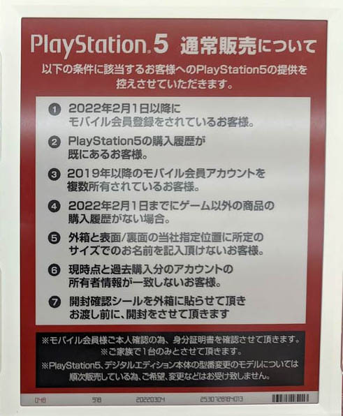 ららぽーと立川立飛店、13時20分現在PS 5完売表示でした。